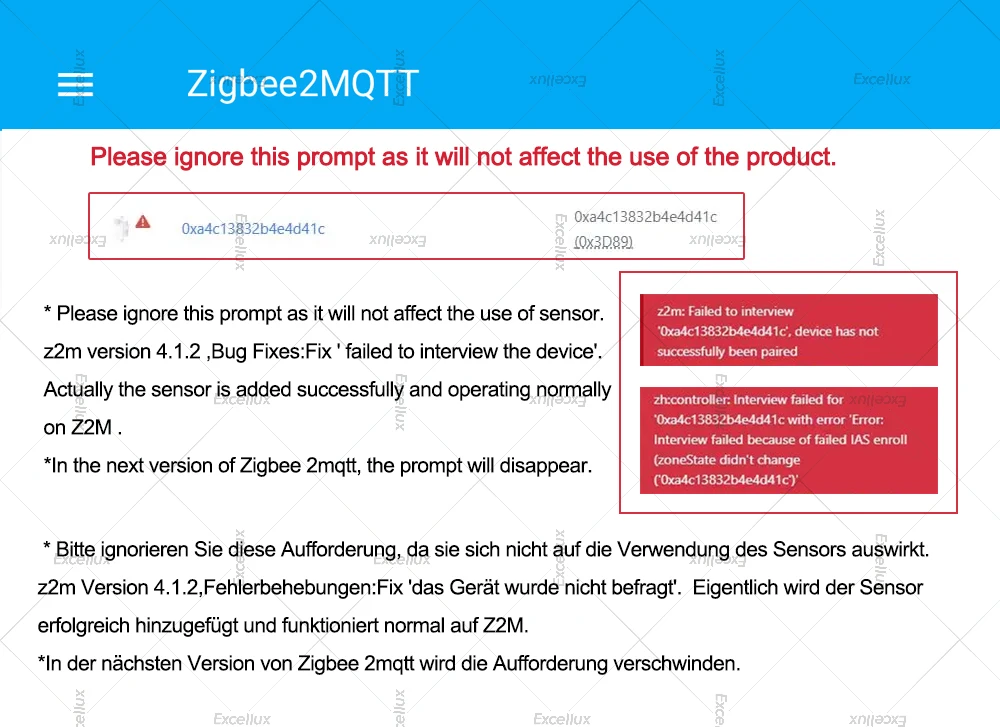 4.Question :Zigbee2MQTT detected, but I get the error message "Interview failed" ,why ?