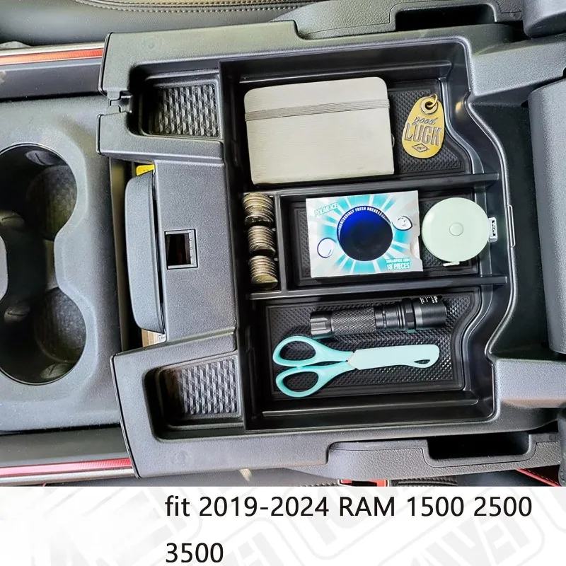 "Fitment: Center console insert tray Compatible with RAM 1500 2500 3500 2019 2020 2021 2022 2023 2024. (Not fit for 40/20/40 Split Bench Seat.)