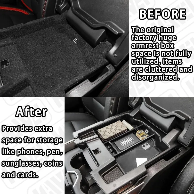 Match Well: The insert dividers are high enough, you don't need to worry about the items will mix together when you lift the console. Original size of vehicle design, leave a reserved charging port.