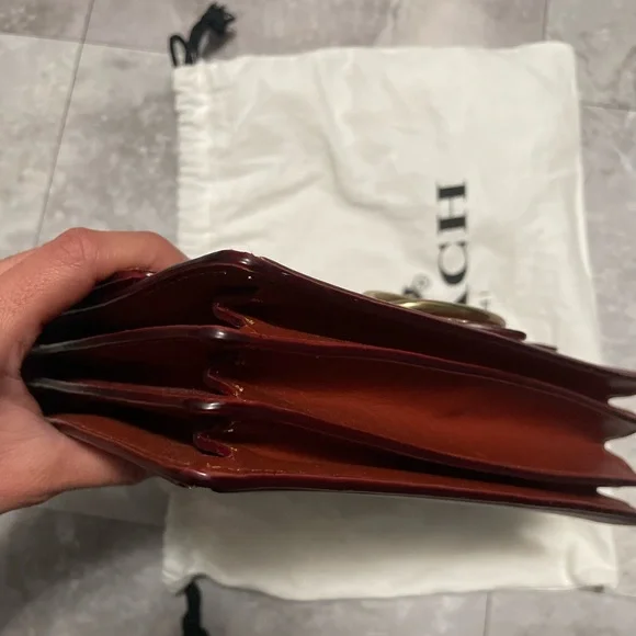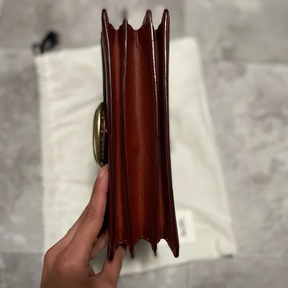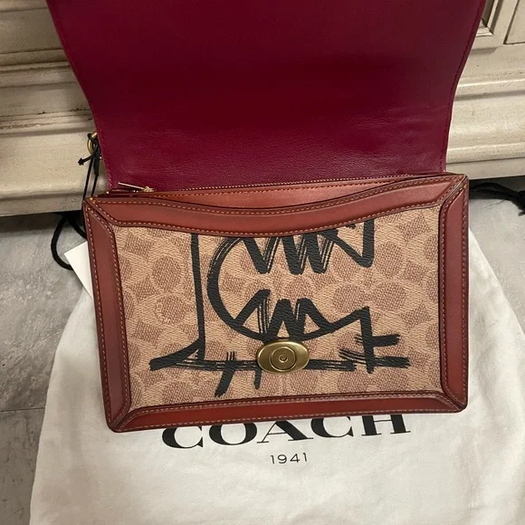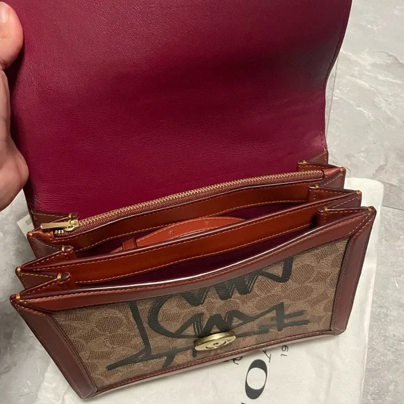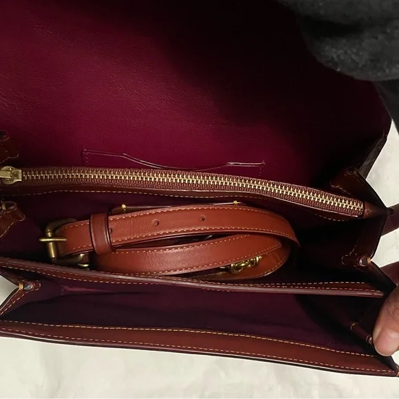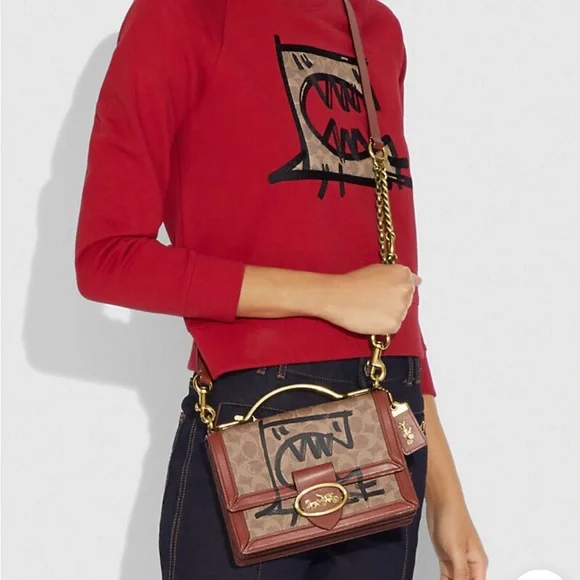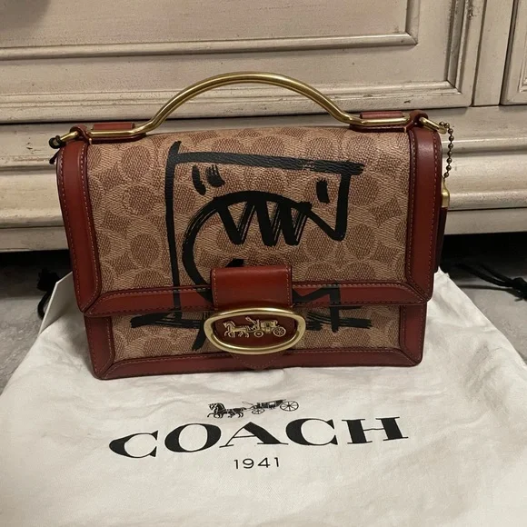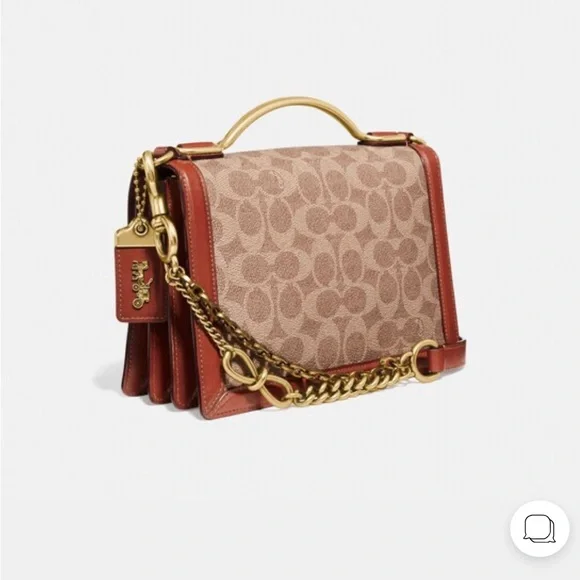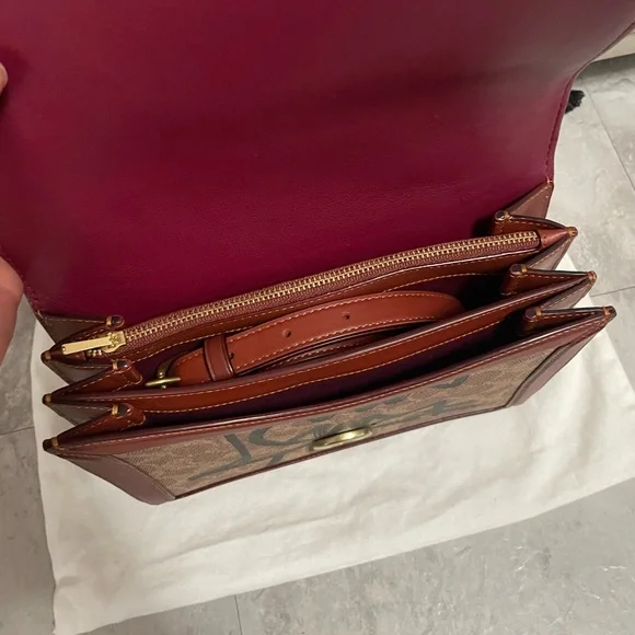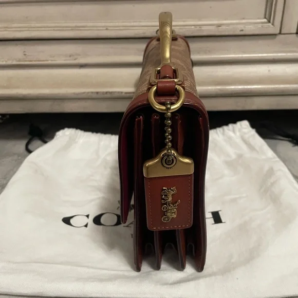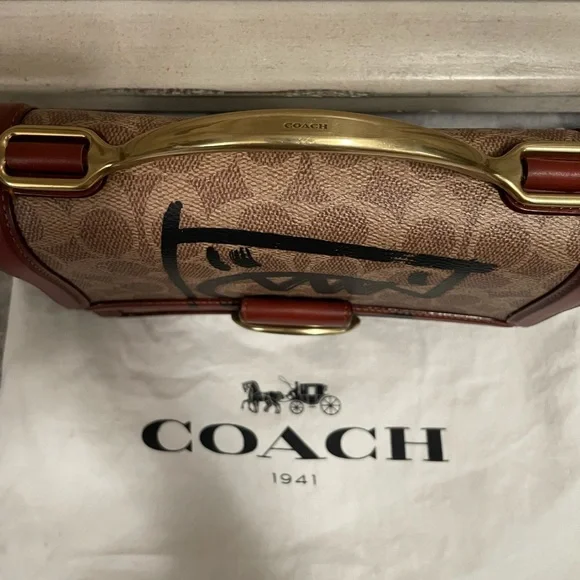 Used bag, bag has wearI am the second owner The previous owner put paint to cover a scratch or a blemish on the strap (pictured) very smallSignature coated canvas with refined calf leather detailsOne credit card slotInside zip pocketSnap closure, fabric liningTop handle with 1 1/4" dropDetachable strap with 21 1/2" drop for shoulder or crossbody wearInstantly change the look of your bag with an interchangeable strap.8 3/4" (L) x 6 1/2" (H) x 3 3/4" (W)