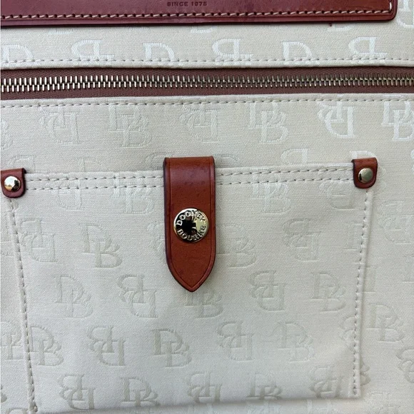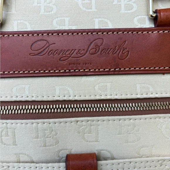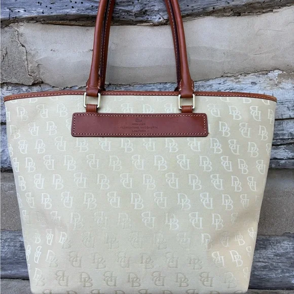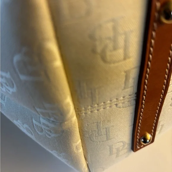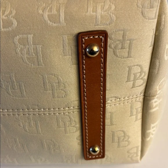Dooney & Bourke Cream Signature DB Monogram Tote/Purse Leather Handle And Trim