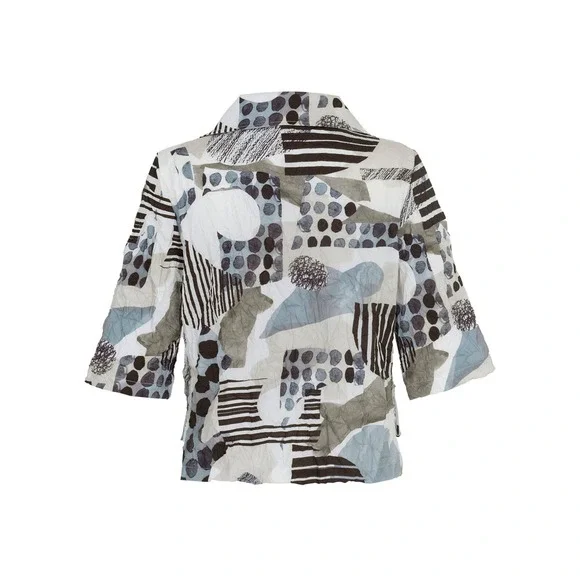 Unleash your inner fashionista with our Ever Sassy Abstract Printed Jacket, the ultimate statement piece for the modern woman. Crafted from a blend of 97% polyester and 3% elastane, this jacket offers the perfect balance of style and comfort, ensuring you look and feel your best all day long.🎨 Abstract Elegance: Make a splash with the striking abstract print that adorns this jacket. Its muted colors and bold patterns add a touch of artistic flair to any ensemble, ensuring you stand out from the crowd wherever you go.💫 Lightweight and Versatile: Perfect for the warmer months, this lightweight summer jacket offers just the right amount of coverage without weighing you down. Whether you're running errands or meeting friends for brunch, this jacket effortlessly transitions from day to night.🌞 Casual Chic: Embrace laid-back sophistication with the casual yet stylish design of this jacket. The 3/4 sleeves and diagonal zipper add a modern twist to the classic silhouette, while the abstract print adds a pop of personality to your look.🌟 Effortless Confidence: Step out with confidence knowing you're dressed to impress in this eye-catching jacket. Its flattering fit and attention-grabbing print are sure to boost your mood and make you feel fabulous all day long.