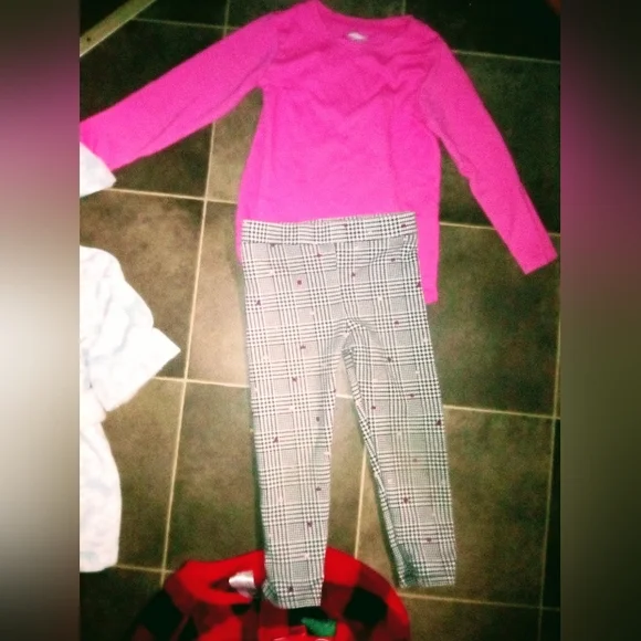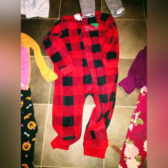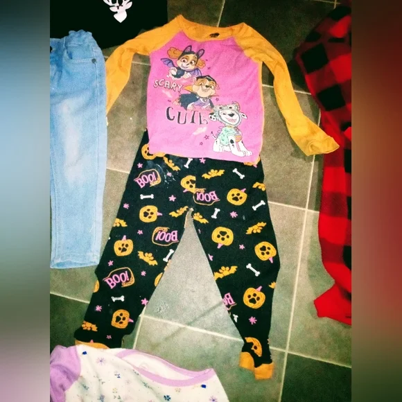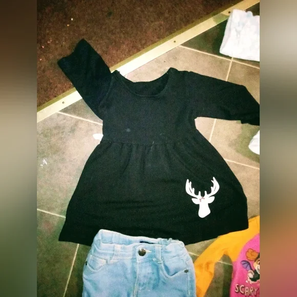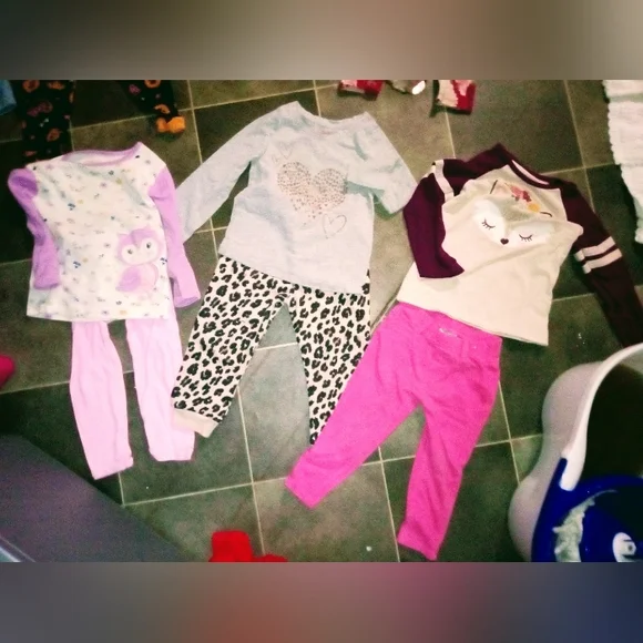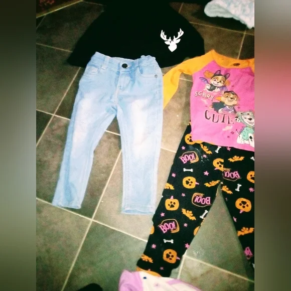comes with 3 sets of pj's5 outfitsone bathrobeone dressone jacketone super furry warm sleeveless vesteach outfit is 5$ a piece and each item after that is also 5$ a piece no stains on any of the clothes and all are in brand new condition. bathrobe is free with bundle purchase!also deer dress is freenot pictured is plain black shirt that goes with the jeans! I paid 5$ per piece of clothing so 50$ just for the 5 outfits alone. 10 for each of the PJ sets and 10 for the vest 5 for the jacket and 8 for the bathrobe..so really it's a hell of a steal! I will bundle any single items together as well..thanks.