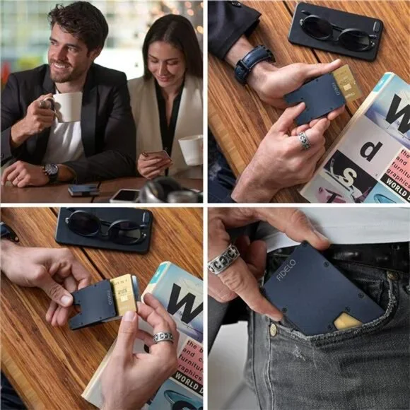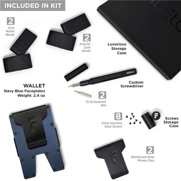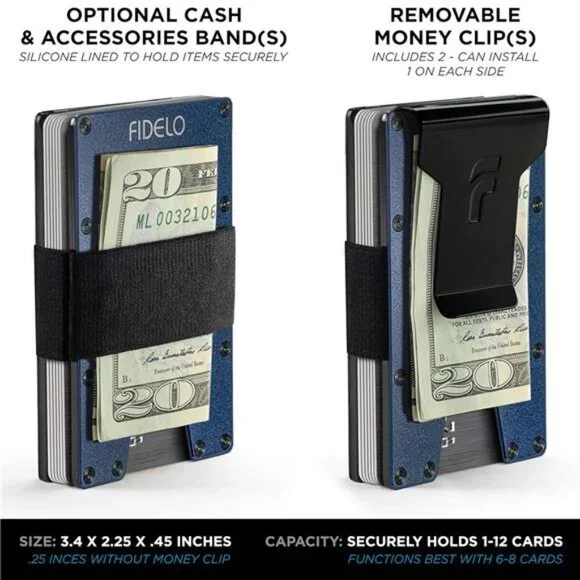 🧿Eclipse Solo metal wallet for men - This card holder is made of Navy Blue 7075 aluminum patented design. Includes 2 cash band and 2 steel money clip. Size: 2.4oz, 3.4x2.25x0.25in (0.45 with cash clip)🧿The compact modern wallet - Premium Solo clip wallet provides a user-friendly experience. The money clip wallet fits in any pocket and has silicone-lined bands to hold 1-12 cards & up to 10 bills🧿Aluminum wallet that doesn't jam - Use our premium metal wallet with a pop-up feature with smooth ejection. You can grab each one of your cards with a flick of your finger on this trigger wallet🧿Thieves will come up empty handed with our RFID blocking wallet - Our metal wallet effectively blocks 13.56 mhz frequencies (debit/credit cards) to keep your valuables safe so you don't have to worry