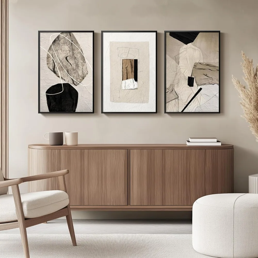 • [Framed Wall Art]: Set of 3 large framed neutral abstract wall art, each measuring 16x24 inches, each painting with a sturdy frame