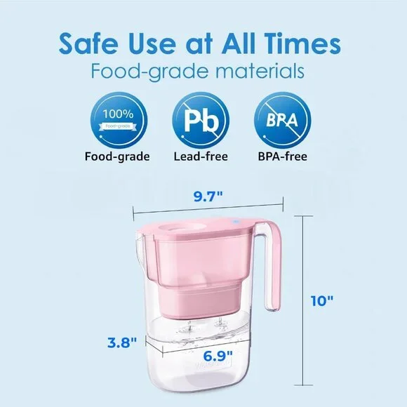 ◉ Condition: Brand New * Multi-color options: The modern, multi-color design of the water filter pitcher wih lid, an apartment essentials item, is coupled with a 7-cup filtration capacity and a compact body. The pitcher with a lid is perfectly fit for your refrigerator, an element crucial to any kitchen essentials and apartment essentials. A pitcher with lid keeps your water protected, enhancing the overall functionality in your dormitory, home, office.Replacement filters model: WD-PF-01A. * Exceptional quality: This pitcher's innovative design features a hands-free lid that allows for automatic water dispensing without the need to open the lid, ensuring convenience and hygiene by preventing dust accumulation. It is engineered to fit most refrigerators with its compact size. Product Dimensions: 9.7"*3.8"*10". Please verify your fridge dimensions for compatibility, as is recommended for all apartment essentials. * NSF certified filtration performance: This filtered water pitcher wih lid has passed NSF42 and 372 certifications, confirming the use of high-quality activated carbon fiber only. The residual chlorine reduction rate is as high as 97.4%. * Dedicated filtration performance: Using multi-stage water filter technology, this water filter pitcher can effectively reduce chlorine, PFOA/PFOS, odor, iron, and metal ions, tested by a third lab. The main purpose of the pitcher is not TDS reduction.