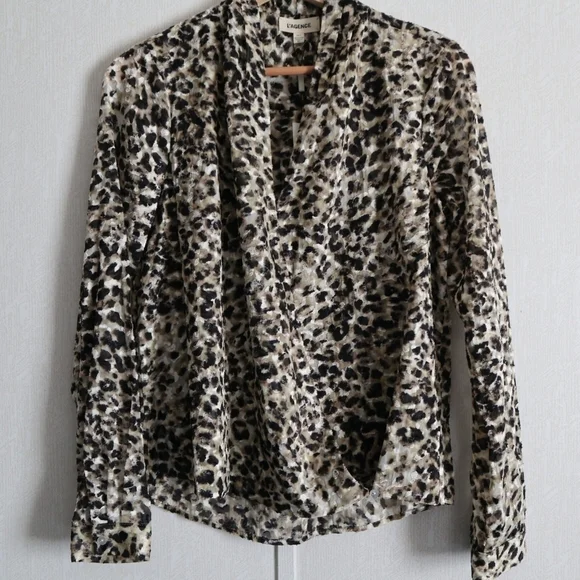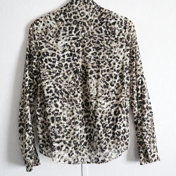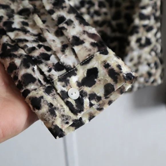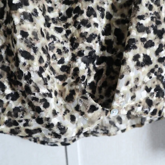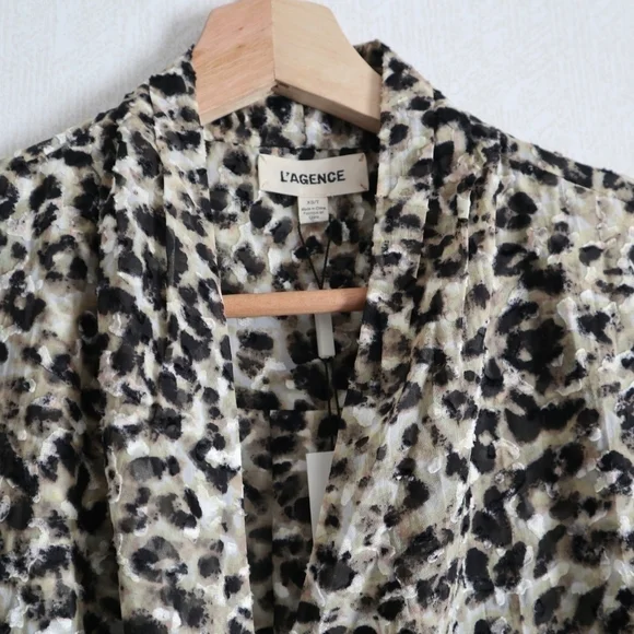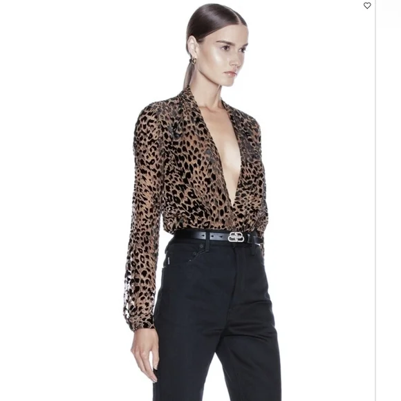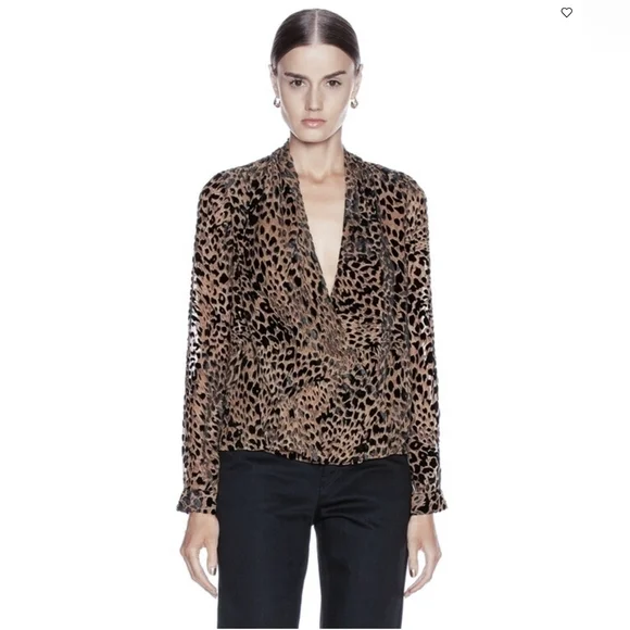 Draped surplice styling adds to the slinky allure of a faux-wrap blouse cut from leopard-spotted burnout velvet that's left sheer along the sleeves and back.Hidden front snap with side button closureSurplice V-neckLong sleeves with single-button cuffsPartially lined68% viscose, 32% silkDry cleanImported*real color more light them stuck photo * First photo is similar related to * Check all photos before ordering* Clothing colors may vary in the shade as we shoot in different natural lightingApproximate Measurements Laying FlatArmpit to Armpit 19.5"Length 23.5"