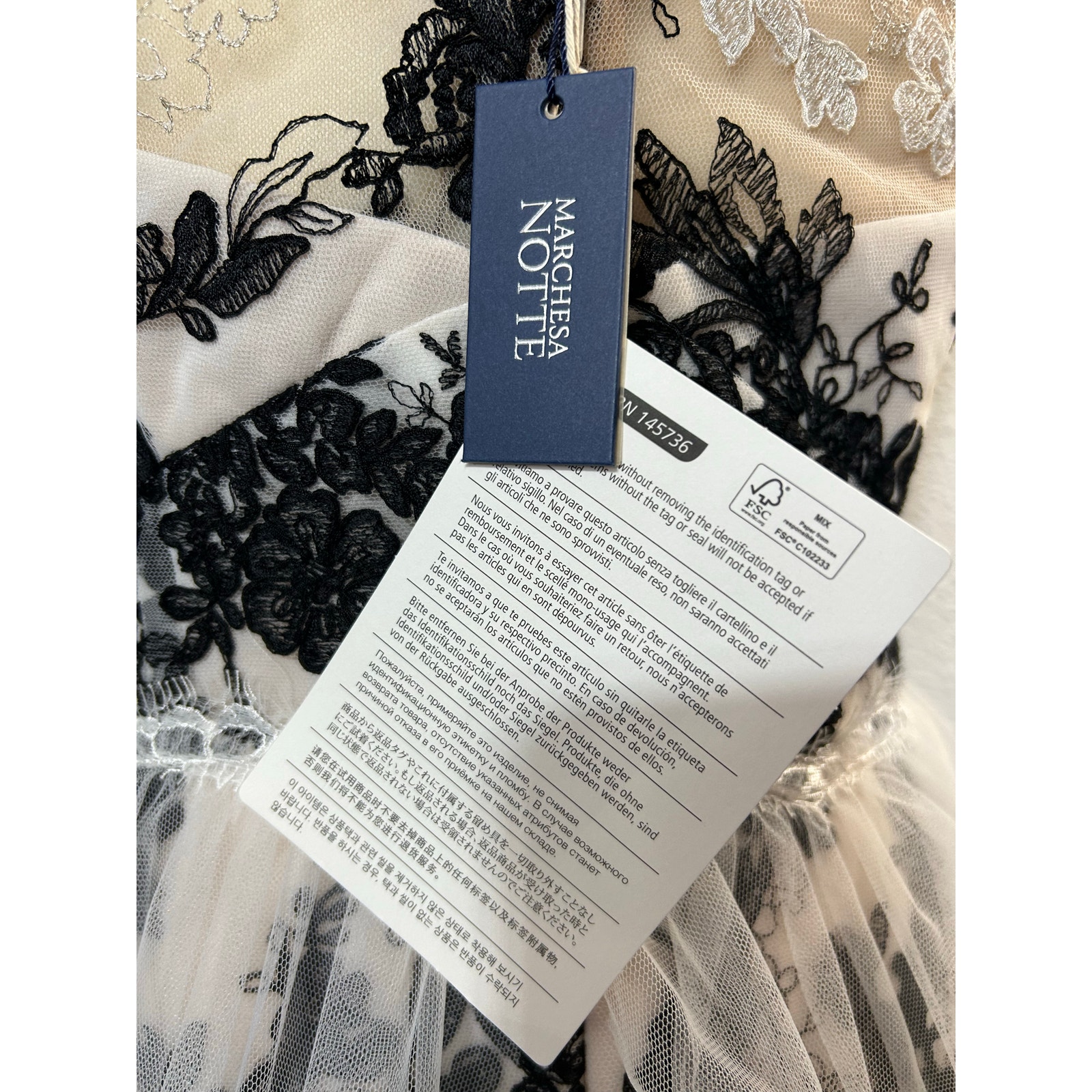 NWT Marchesa Notte Knee Length Tiered Lace Applique Dress Size 8 White Black
