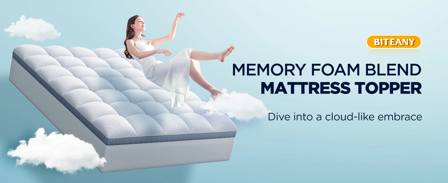 1. 【WRAPPED BY THE MARSHMALLOW】Feel too hard on the firm mattress topper and too soft on down alternative ones? Biteany mattress topper will offer you perfect balance between firm and soft to save your sleep. Made of shredded memory foam blended with microfiber, it will mold around your body to give you marshmallow-like comfort without losing support. When you get up, our topper will regain their shape slowly without the need to fluff it again and again.