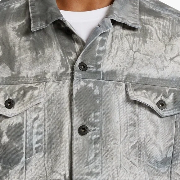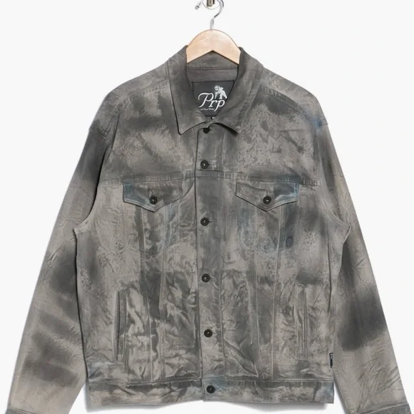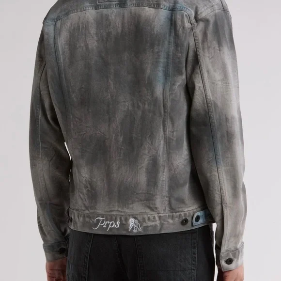 PRPS Constructive Denim Jacket size XLA classic denim jacket features vertical pockets at the front.• 26 1/2" length• Front button closure• Spread collar• Chest button-flap patch pockets; front welt pockets• 100% cotton• Machine wash, tumble dry• Made in the USA