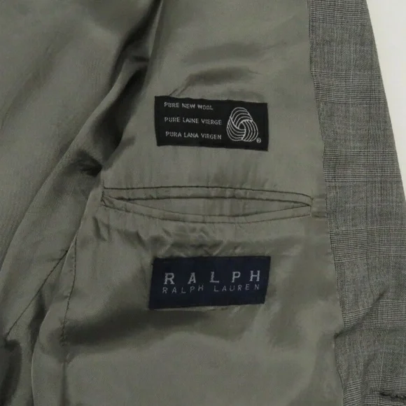 Description: NWOT Ralph Lauren 100% Wool Check Gray 2 Button Blazer Sport Coat Jacket -Two button closure-Two front flap pockets-Left chest pocket-Single vented back-Four button cuffs-Notch collar-Union madeSize (Check Measurements): Mens 42 TColor: GrayFabric: 100% woolCondition: New Without TagsItem#: 65859Measurements are in inchesArmpit to armpit: 23"Back bottom of the collar to the hem: 33"Shoulder to shoulder: 19 3/4"Shoulder seam to end of cuff: 25 1/2"BUYING VINTAGE·We do our best to thoroughly inspect all items for any visible imperfections i.e., rips, repairs, holes, stains, etc. and note as such.·Please note vintage sizes are not always comparable to today's sizing. Please refer to the measurements in the description for a more accurate depiction of the true size. If an issue should arrive, please contact us prior to leaving a negative as we strive for providing excellent customer service.Please compare your measurements to the measurements provided in the listing description to ensure a proper fit.