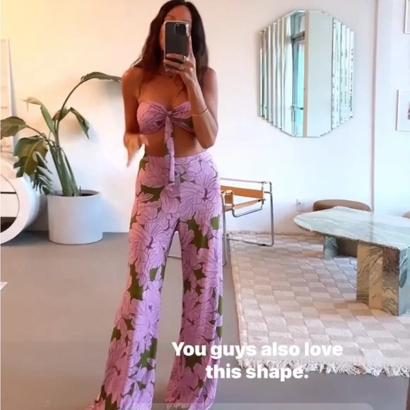 Never worn! Step into style with the RESA wide-leg jumpsuit, featuring a vibrant purple and green color palette. The high-waisted design and flowing legs create a dramatic silhouette, perfect for making a statement. Crafted from lightweight fabric, this jumpsuit offers both comfort and elegance for any occasion.