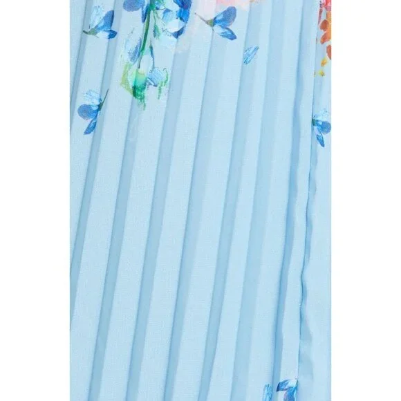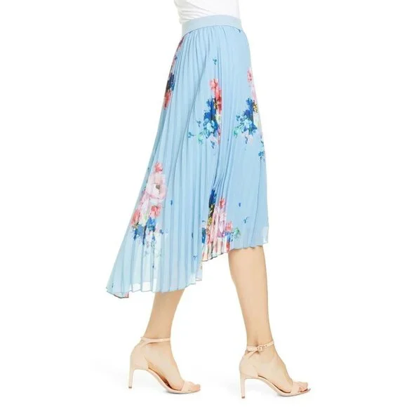 TED BAKERHARRPA Raspberry Ripple Pleated Midi SkirtColor: BlueSize 4 / US 12A flower-filled flow enlivens this softly pleated skirt cut with a swingy hemline that puts swish and sway into every step.Hidden side-zip closureLined100% polyesterNEW WITH TAGSApprox. Measurements:Waist (across): 15.5”Length: 34.5”
