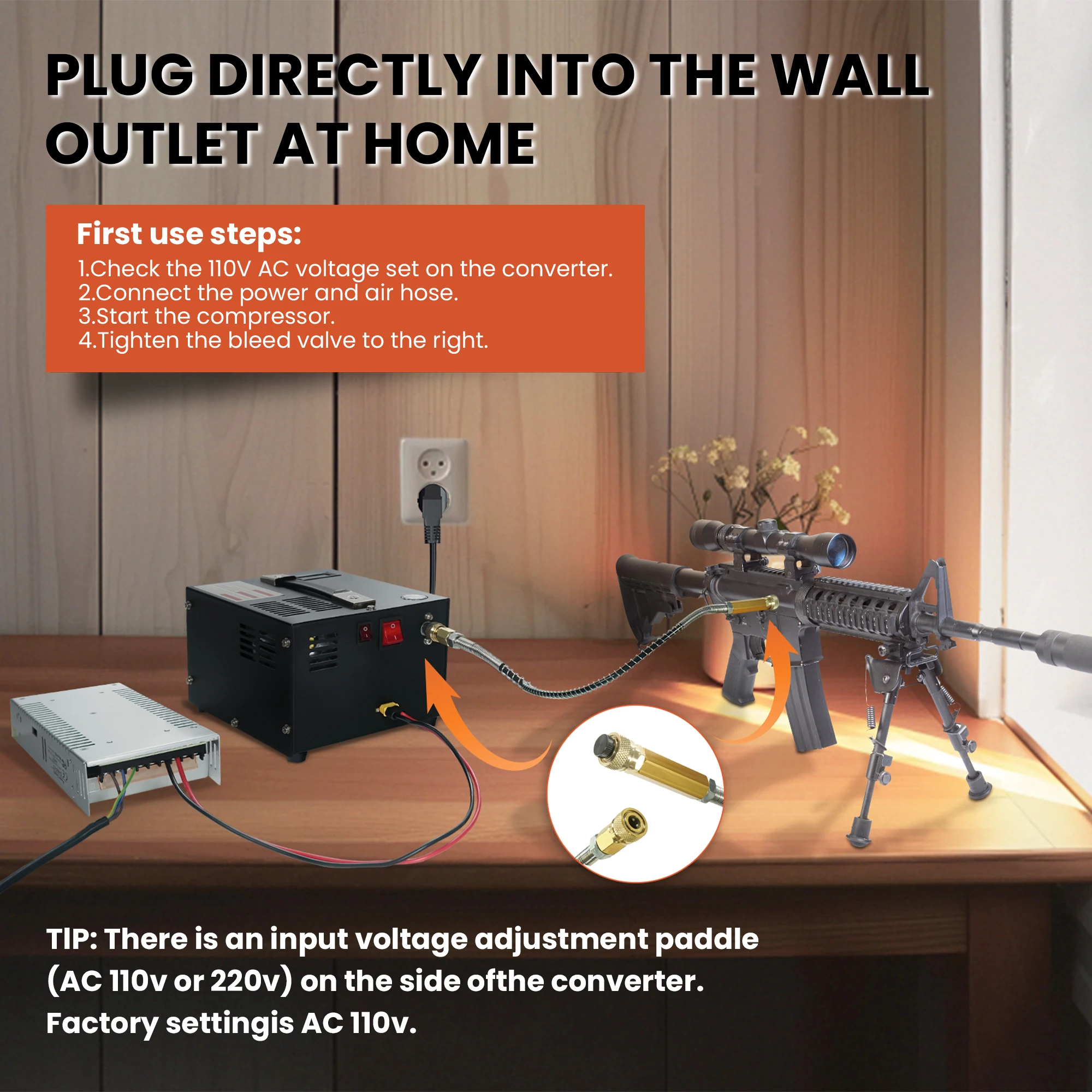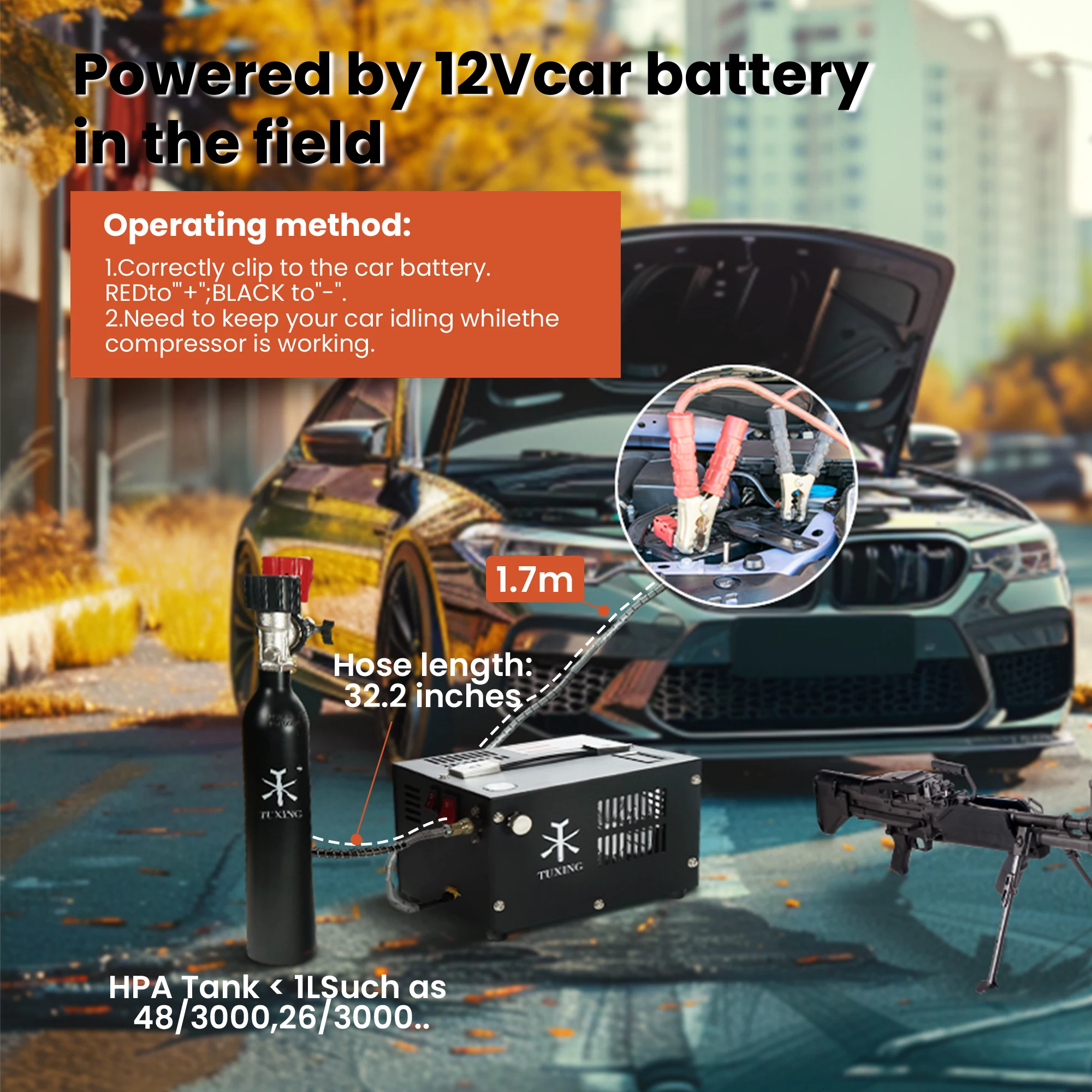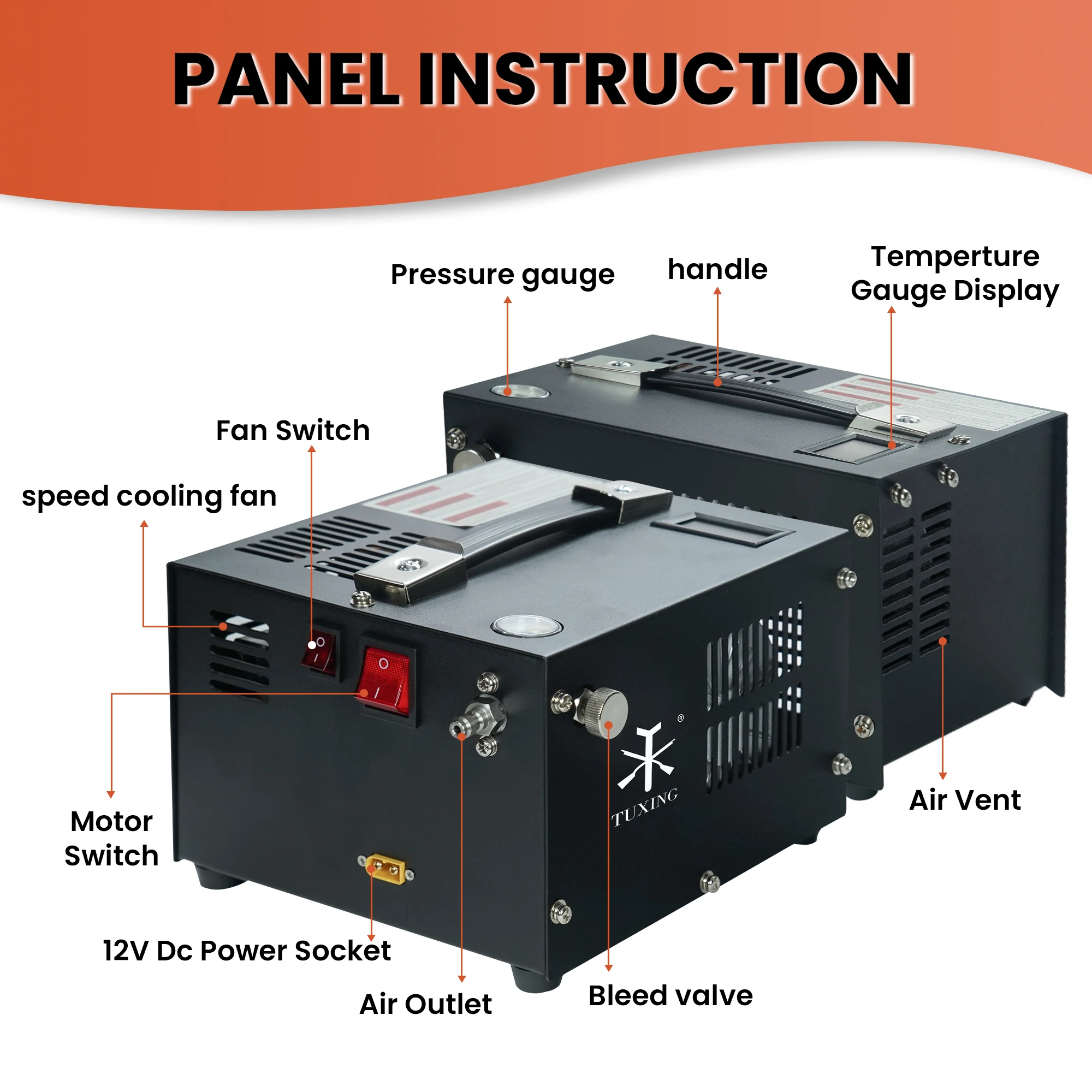 【Fast charging speed】The maximum pressure of this product is 4500PSI, which makes it only takes 15min for the pressure of a 0.5L diving bottle to rise from 0MPa to 30MPa;
