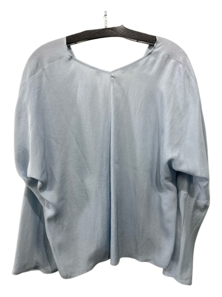 Vince Size Large Light Blue Triacetate Long Sleeve Surplice Snap Button Top